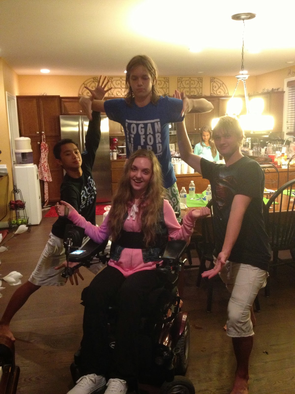 Jacoby and Kaleb both just wanted to have a party at home, so we did! The party was a great time just hanging out with family and friends, soccer and hot tubbin for the boys, "chatty chat" time for the girls, and all you could eat ribs. WHAT MORE COULD ANY 16 YEAR OLD WANT?! Jacoby mentioned to me she would have liked to have been walking by her 16th birthday, but the Good Lord must have something better planned...that we know for sure!